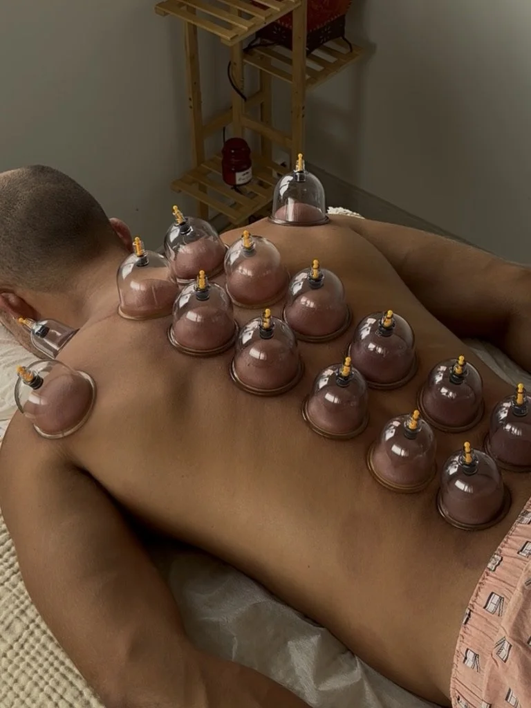 Therapeutic massage combined with cupping techniques to relieve muscular tension, reduce pain, and improve circulation. This treatment targets specific areas of discomfort, helping to release knots, alleviate chronic or acute pain, and promote faster recovery. Ideal for those experiencing back, neck, shoulder, or joint pain, the session supports overall physical well-being while restoring mobility and comfort. Sessions typically last 60 minutes.